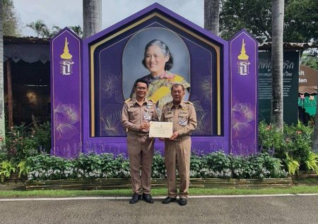 เข้ารับพระราชทานป้ายสนองพระราชดำริ ในงานฐานทรัพยากรท้องถิ่น โครงการอนุรักษ์พันธุกรรมพืช