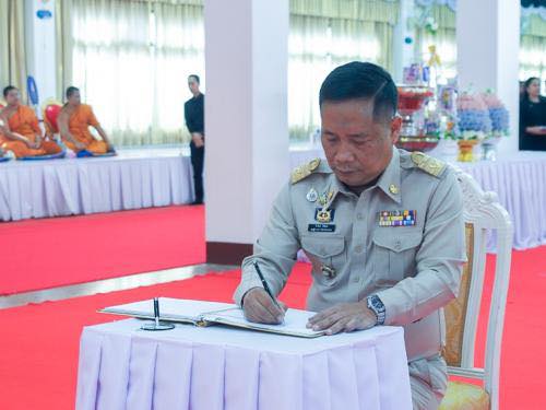 พร้อมด้วยหัวหน้าส่วนราชการระดับจังหวัดและอำเภอ เจ้าหน้าที่พัฒนาชุมชน เครือข่ายและสมาชิกกองทุนแม่ของแผ่นดิน ร่วมในพิธีอย่างพร้อมเพรียง