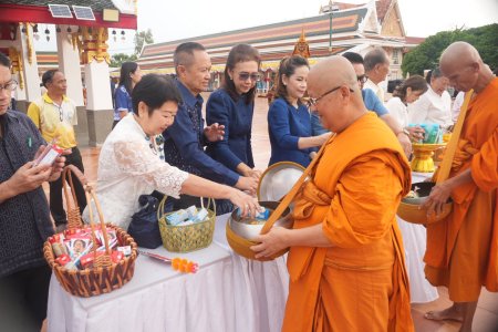 และที่ปรึกษานายกเทศมนตรีนครสกลนครร่วมพิธี ทำบุญตักบาตรเนื่องในวันออกพรรษา ประจำปี 2568