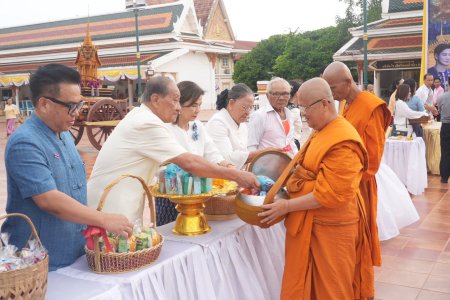 และที่ปรึกษานายกเทศมนตรีนครสกลนครร่วมพิธี ทำบุญตักบาตรเนื่องในวันออกพรรษา ประจำปี 2568